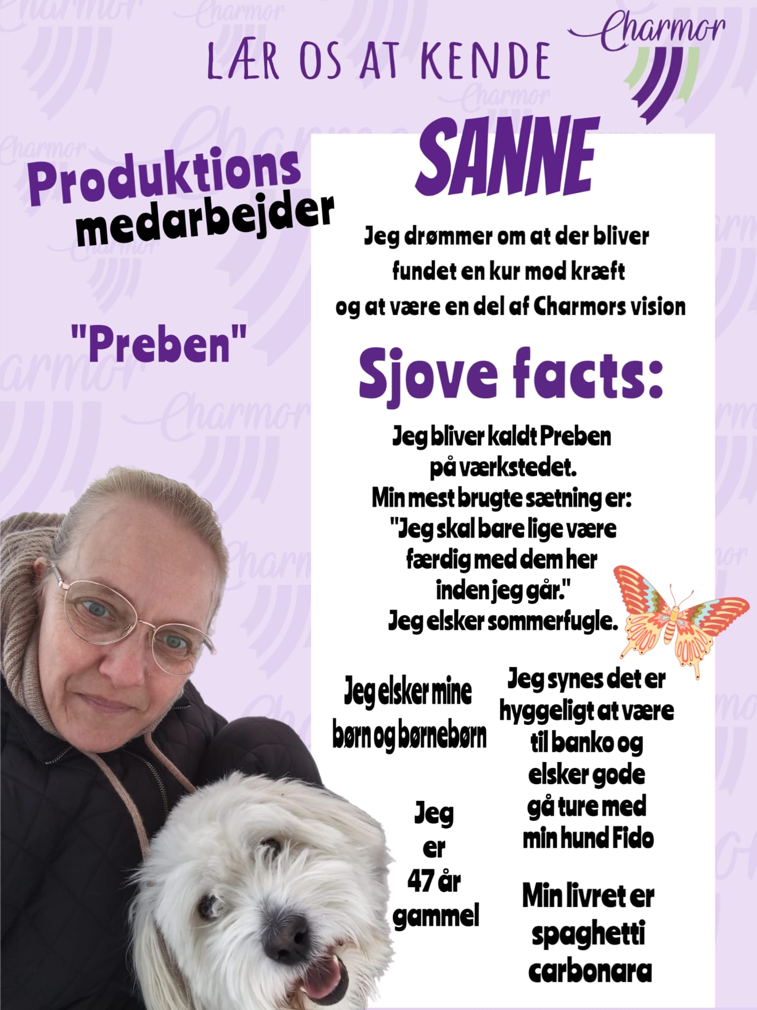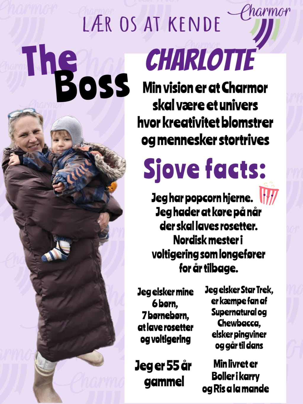 ”CHARMOR har fra start haft et ønske om at kunne tilbyde kreative, flotte, smukke, sjove, unikke & anderledes produkter. Alt imens at bæredygtighed, genbrug og recycling står øverst på listen - og skabe en fantastisk arbejdsplads.