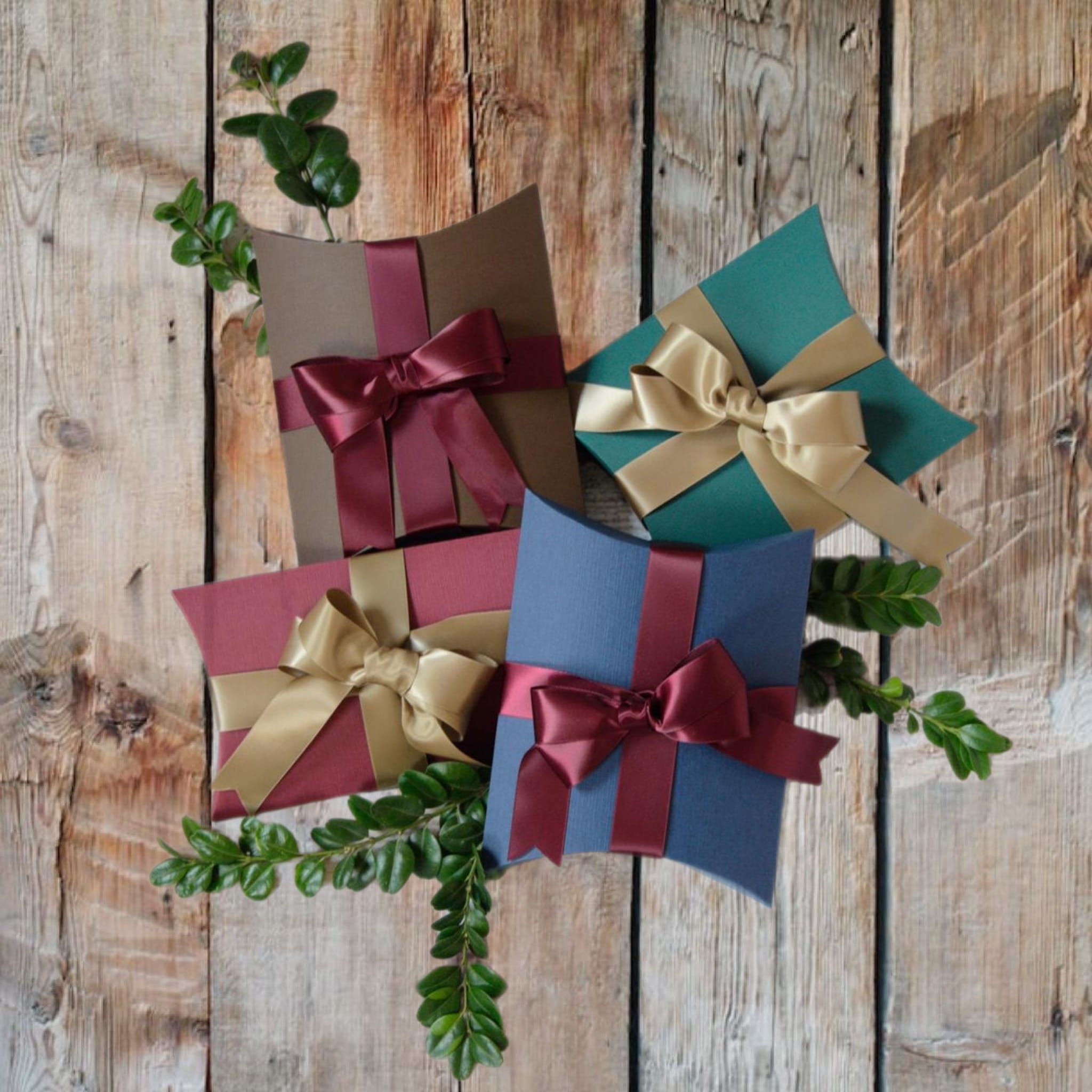 Pakkerne kan indeholde broderede lækre produkter, samt store flotte rosetter.